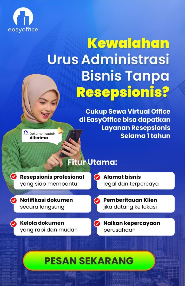 Membangun bisnis yang sustainable bukan hanya soal produk atau layanan yang bagus. Image profesional, efisiensi operasional, dan legalitas yang kuat adalah fondasi penting yang tidak boleh diabaikan. Virtual office murah dari EasyOffice memberikan solusi all-in-one untuk ketiga aspek tersebut tanpa menguras kantong.